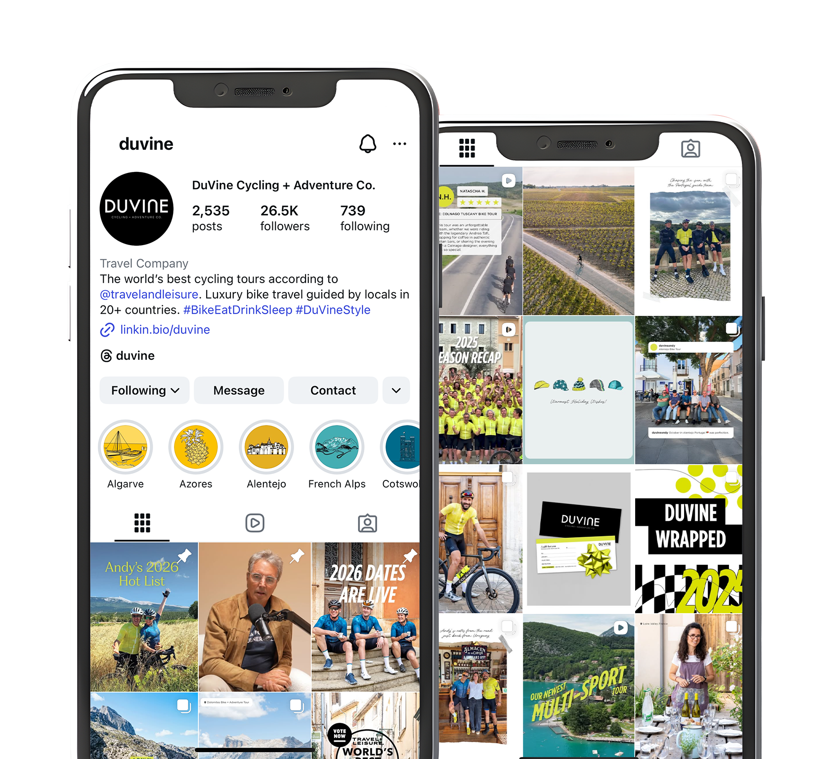 DuVine offers luxury bike tours that focus on exceptional food and wine experiences, thoughtfully designed itineraries, and top-quality gear and support. While working with DuVine as their Junior Graphic Designer, I created organic and paid content enhancing their social media presence.